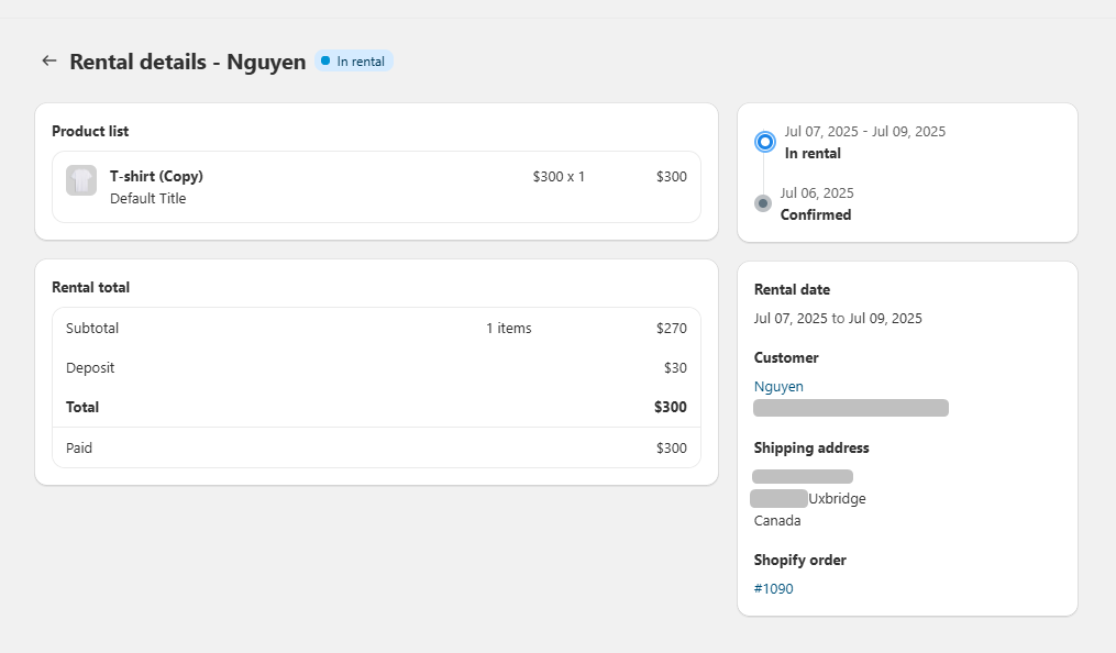 The product has been successfully returned to your store. This is the stage where you'll assess its condition and finalize the order, including the security deposit.